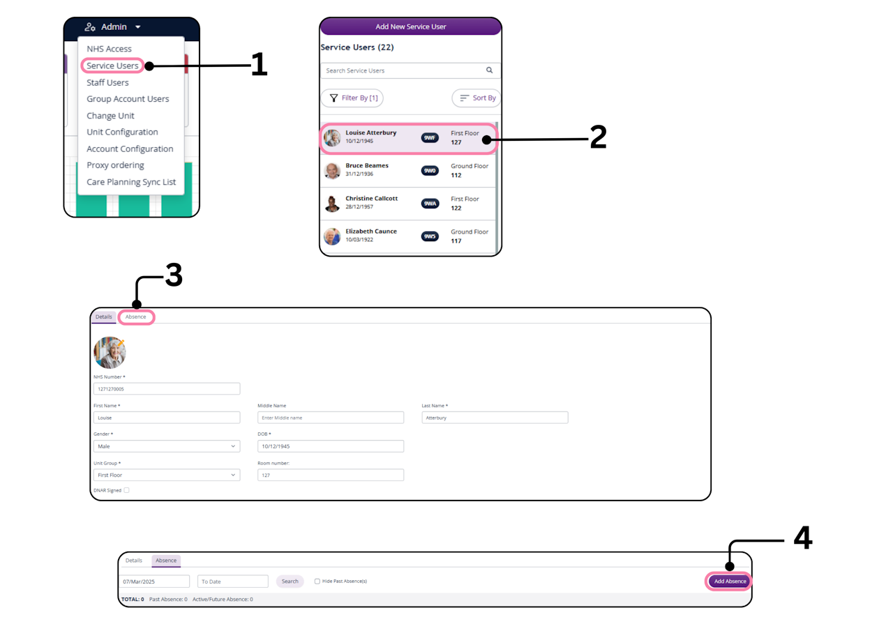 From the list of service users on the left-hand side, select the relevant individual
