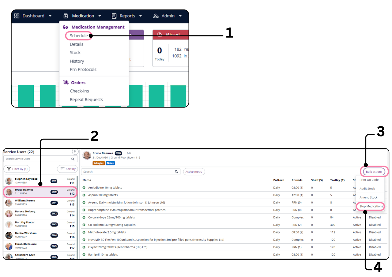 Select 'Medication' at the top of the screen and then select 'Schedule' from the drop down menu