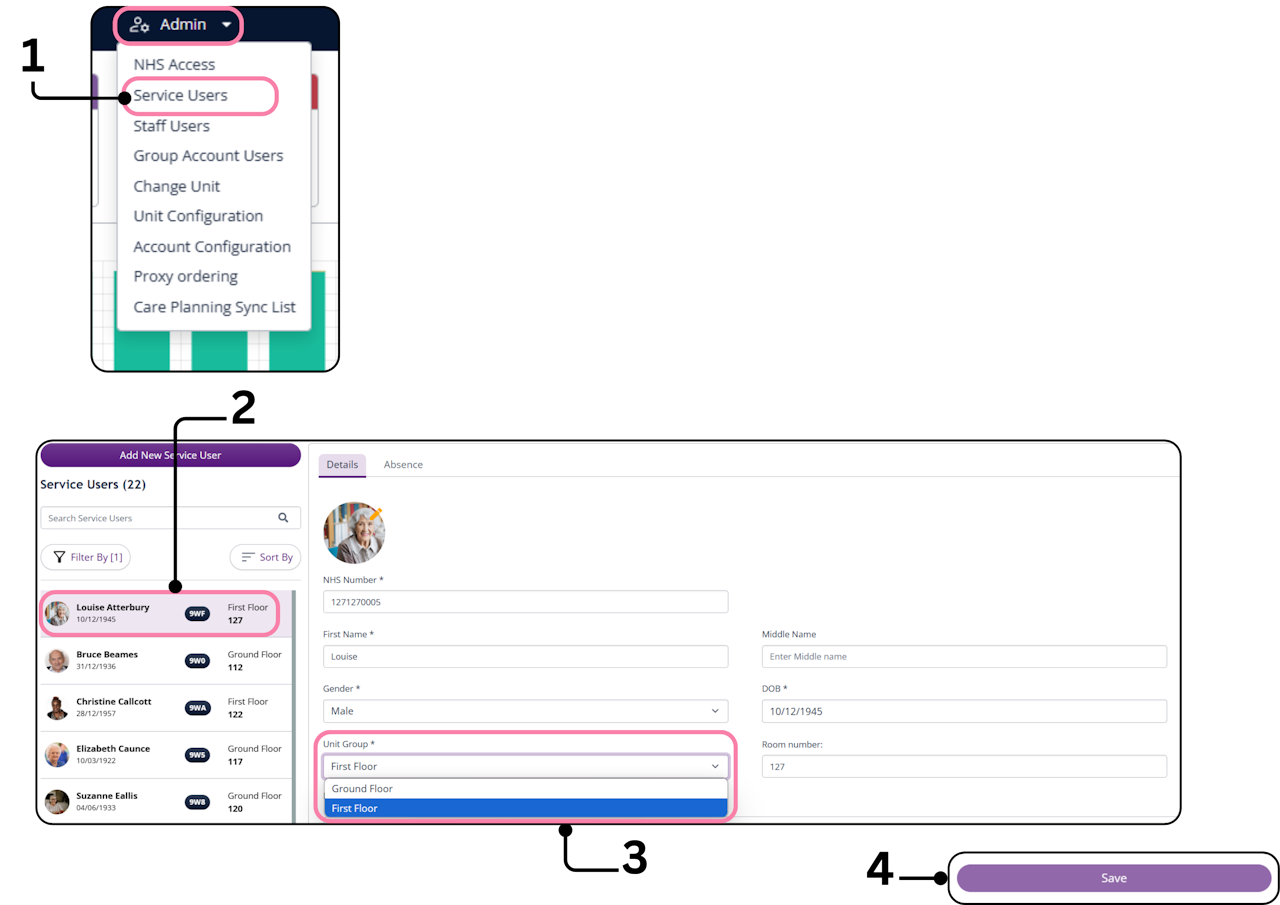 If a service user (resident) has changed rooms to another unit (or ward), it is important to update this in the Portal.