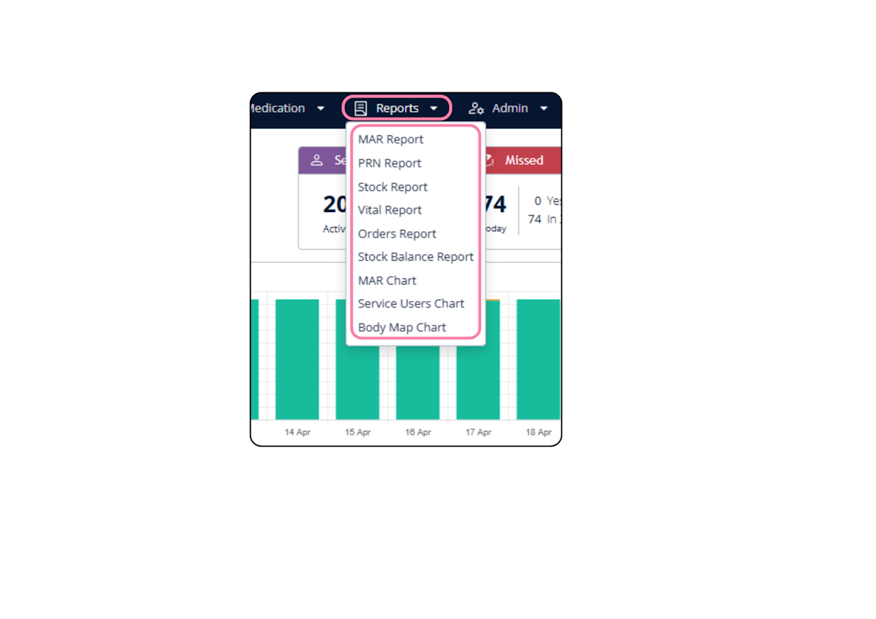 The Camascope Reporting Suite is a powerful tool designed to support compliance, auditing, clinical oversight, and emergency preparedness. It enables care teams to quickly access, filter, and export key medication and service user data for operational and regulatory use.