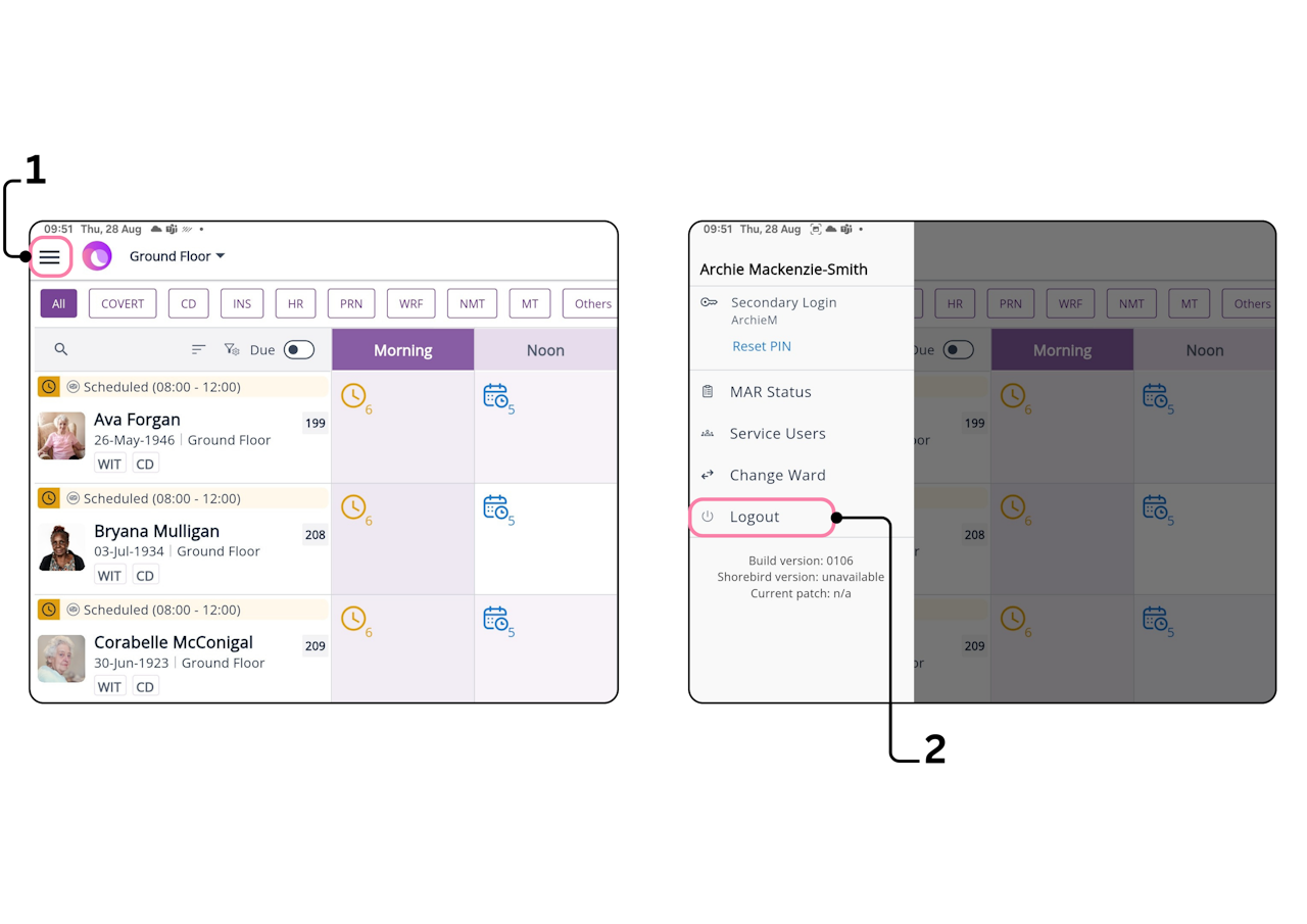 How to log out of the App: