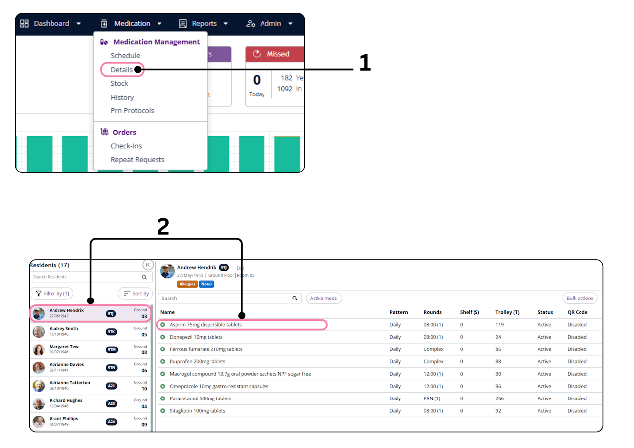 Alternatively, you can click on the relevant medication and select Details.