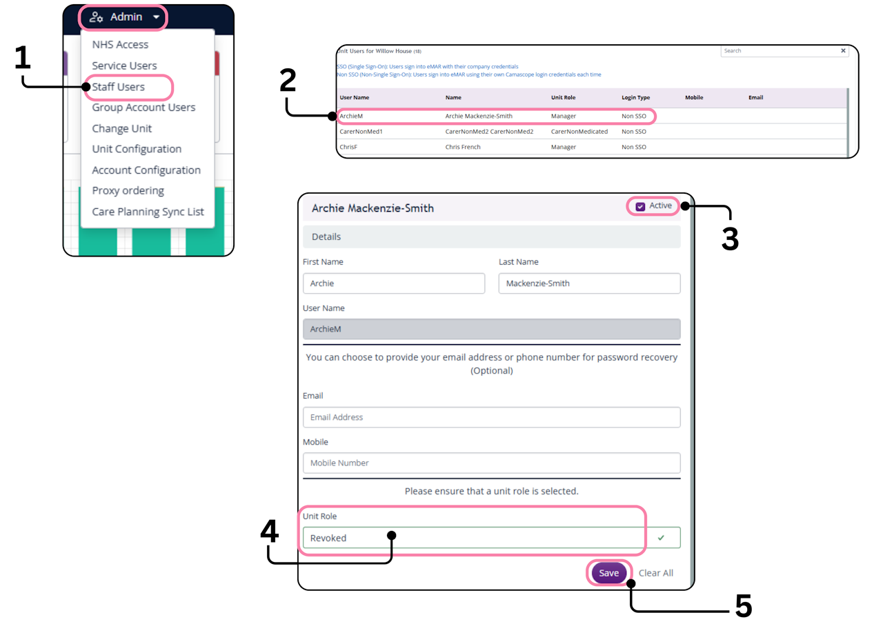 When a staff member leaves the organisation or should no longer have access for any reason, their account must be deactivated within the Camascope system.